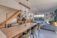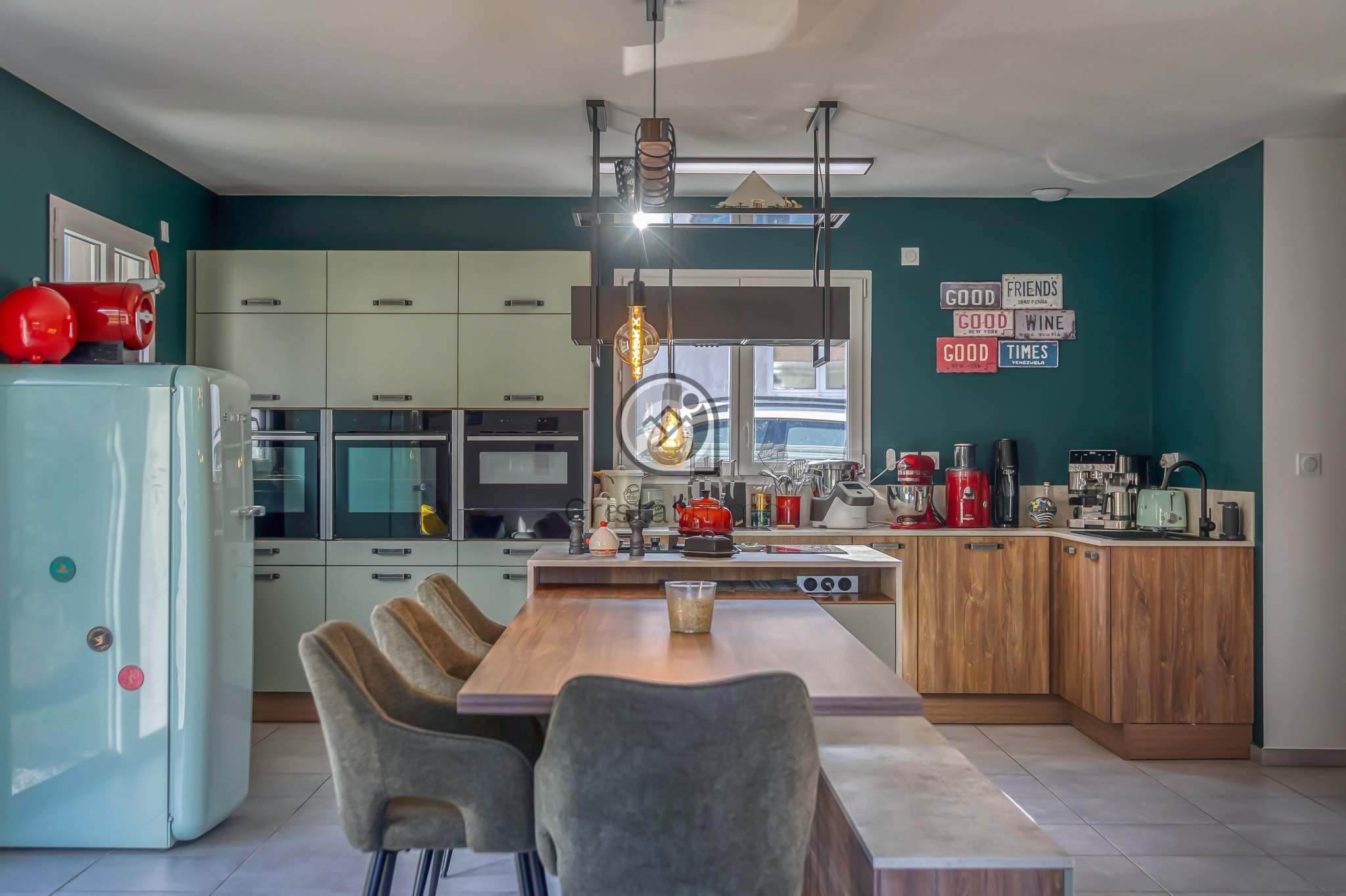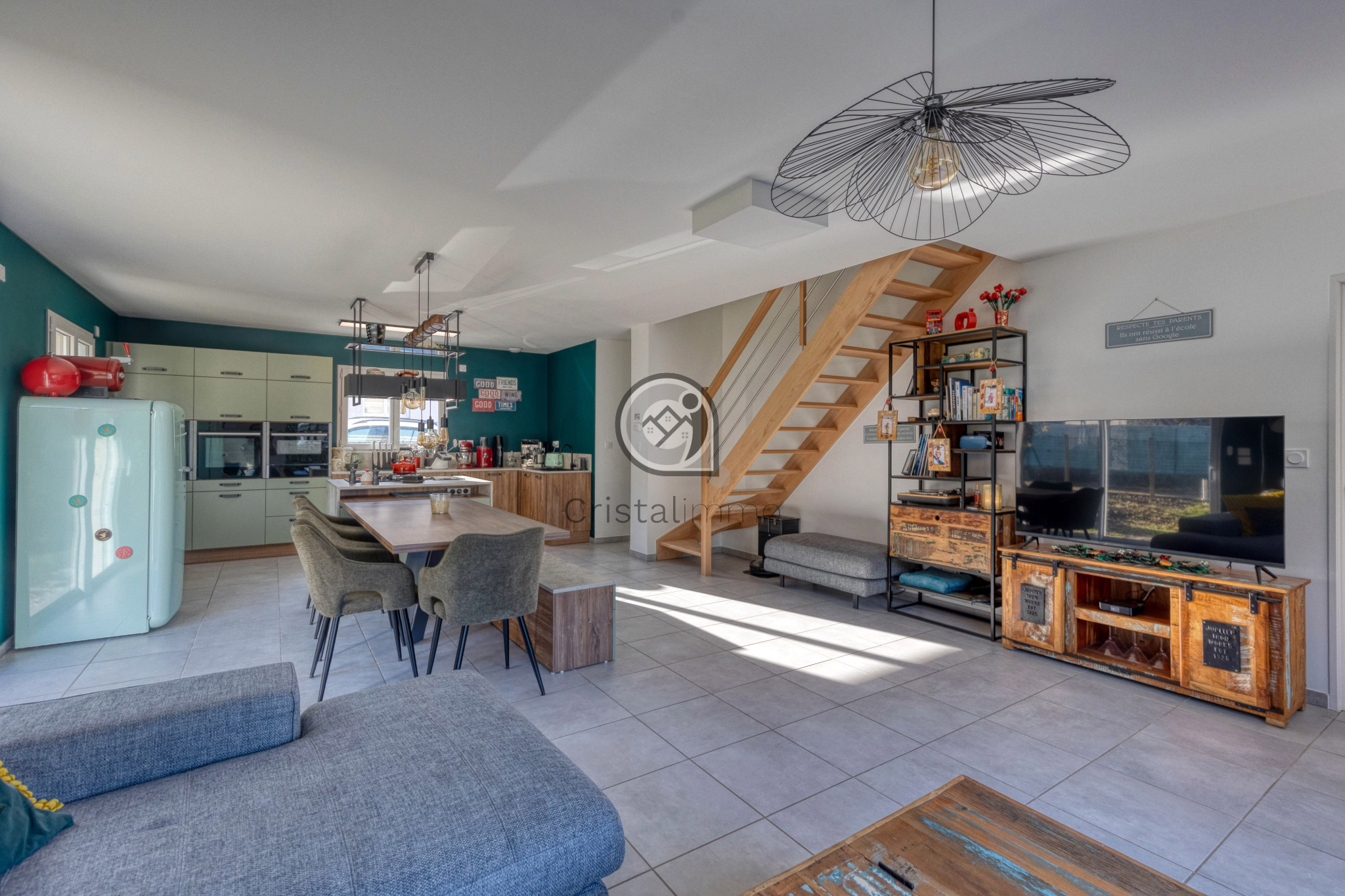 Nicolas LEFORT de l'agence Cristalimmo vous présente en exclusivité une maison idividuelle dans un environnement résidentiel à proximité immédiate des transports (arrêt de bus à deux pas), découvrez cette maison contemporaine de 2025, offrant 119 m² habitables sur un terrain de 405 m² à aménager selon vos envies. La maison s’articule autour d’une pièce de vie lumineuse de 40 m², aux volumes agréables, intégrant une cuisine Cuisinella entièrement équipée, ouverte sur le séjour pour un espace à la fois moderne et convivial. Le rez-de-chaussée accueille une suite parentale avec dressing et salle d’eau, ainsi qu’un garage de 19 m² avec accès direct à l’habitation. À l’étage, l’espace nuit se compose de trois chambres, d’une salle de bain et de WC indépendants, offrant une distribution idéale pour une vie de famille. Prestations et confort : Construction RE2020, économe et performante. Pompe à chaleur air/eau. Chauffage au sol sur les deux niveaux avec thermostat bi-zone. Cheminée avec tubage en attente (poêle à prévoir). Prise dédiée pour véhicule électrique. Deux stationnements privatifs. Une maison clé en main, alliant architecture contemporaine et performance énergétique grace à son excélent DPE. Idéale pour une famille à la recherche d’un bien neuf, confortable et durable. Contactez-nous pour organiser votre visite.