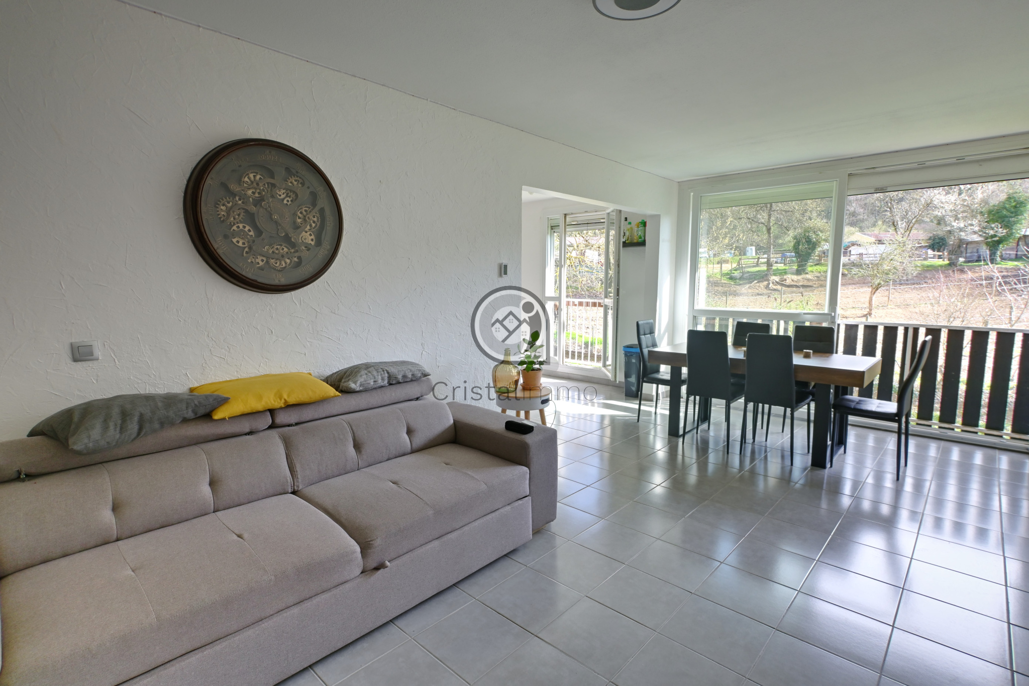 Cristalimmo Grésivaudan vous propose à la vente ce bel appartement de 83 m² situé à Échirolles, dans un environnement verdoyant et agréable, au sein d’une copropriété fermée et entièrement sécurisée. L’appartement bénéficie d’une double exposition offrant une belle luminosité tout au long de la journée et d’une vue dégagée sur un centre équestre voisin, donnant la sensation unique de partager ses repas face aux chevaux grâce à une grande baie vitrée. Le bien est en excellent état et ne nécessite aucun travaux. Il est équipé de double vitrage et de volets roulants électriques. Le chauffage est électrique et le logement affiche une bonne performance énergétique avec un DPE classé C. L’appartement est vendu avec un garage ainsi qu’une cave, apportant des espaces de rangement supplémentaires très appréciables. La copropriété dispose de vastes espaces verts arborés particulièrement soignés qui donnent l’impression d’être à la campagne tout en restant en ville, avec également un barbecue mis à disposition des résidents pour profiter pleinement des beaux jours. Le stationnement est également facile grâce à un parking collectif réservé aux résidents. La situation est idéale, à proximité immédiate des commerces, des transports en commun et des principaux axes routiers permettant de rejoindre rapidement Grenoble. Plusieurs établissements scolaires se trouvent à proximité comme le Collège Louis Lumière et le Lycée Marie Curie, ainsi que de nombreuses écoles primaires et maternelles accessibles facilement à pied. Ce bien constitue une opportunité idéale pour une famille ou pour toute personne recherchant un cadre de vie agréable entre ville et nature. À découvrir rapidement avec Cristalimmo Grésivaudan.
