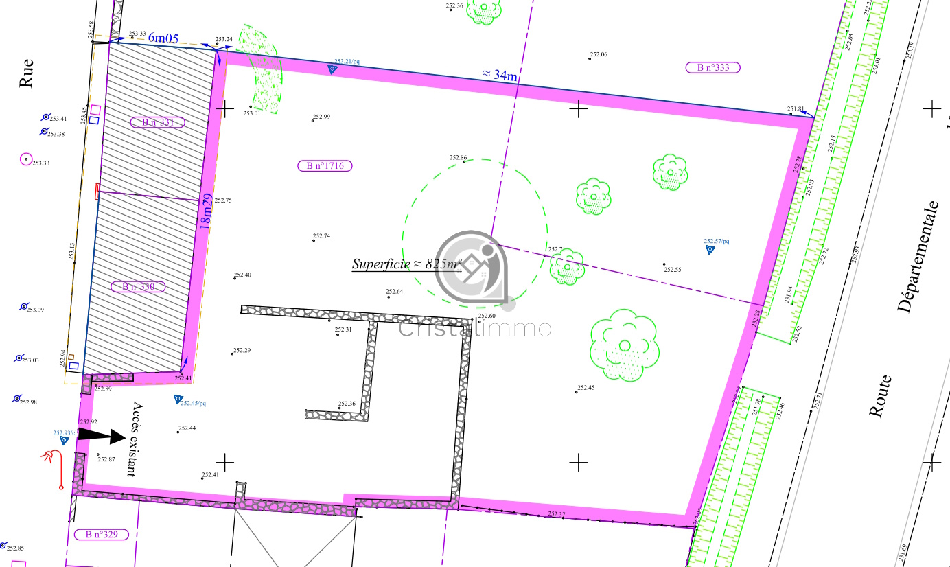 surface terrain 825 m²